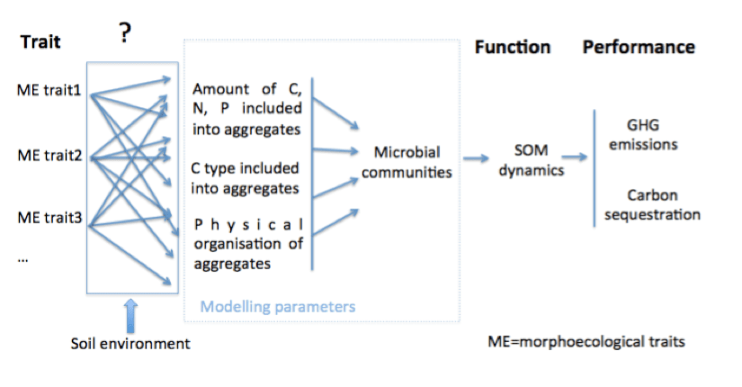 - Identify earthworms’ functional traits favouring SOM stabilisation and reducing GHG emissions through organo-mineral complex formation and inclusion of organic matter inside aggregates.
